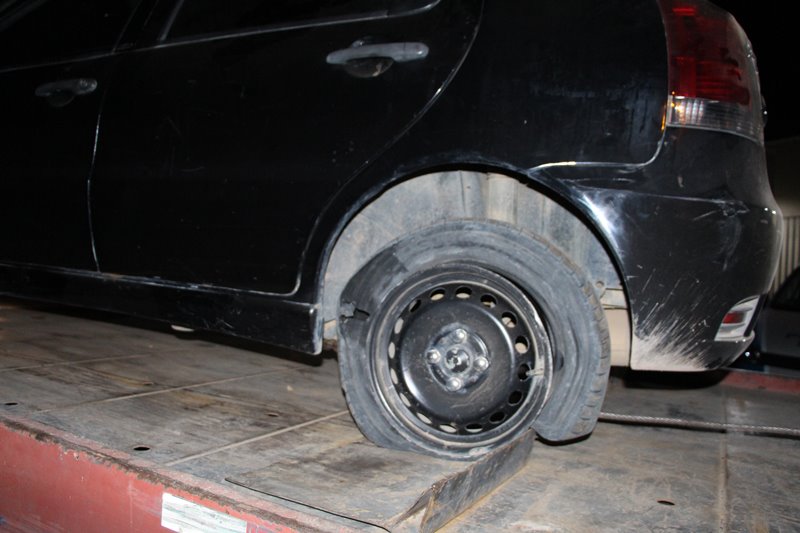 Os policiais acertaram um tiro no pneu traseiro do lado esquerdo do carro, mas mesmo assim os elementos conseguiram fugir, seguindo pela Rua dos Artistas no bairro Gusmão, passaram na Avenida Norte Sul e entraram no bairro Santa Lúcia, onde foram alcançados pelos policiais na Rua Monte Serrat.