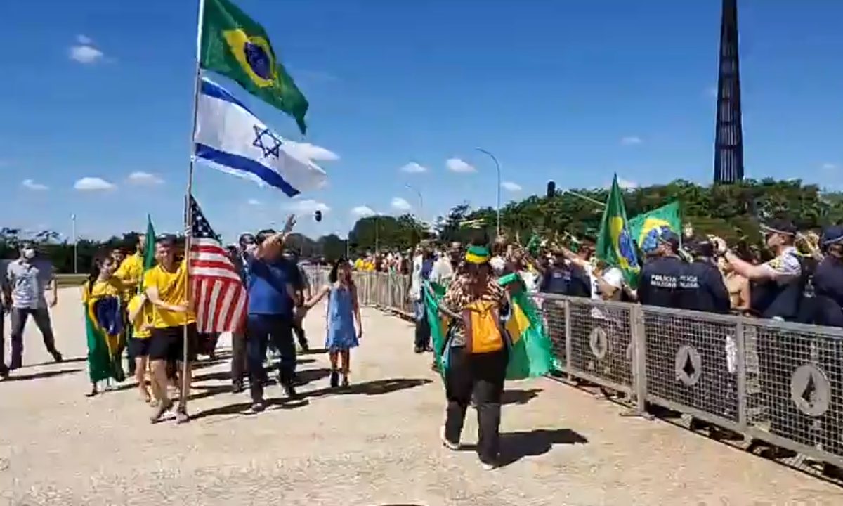 O ato que aconteceu em Brasília neste domingo 03, no qual o presidente Jair Bolsonaro participou, foi motivo de repúdio pela entidade Judeus Pela Democracia. Isso porque o capitão foi até a rampa do Palácio do Planalto acenar para seus apoiadores e levou com ele uma bandeira de Israel junto com a dos EUA.