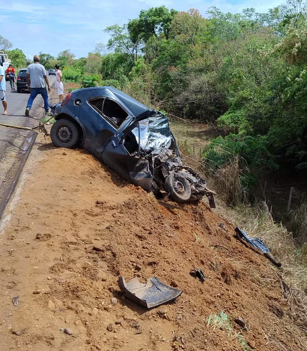 O impacto da batida foi tão forte que o caminhão foi arremessado para um barranco à margem da rodovia. O carro da família também saiu da pista e ficou na descida de uma ribanceira. O motorista do caminhão, segundo o SAMU, não sofreu ferimentos.
